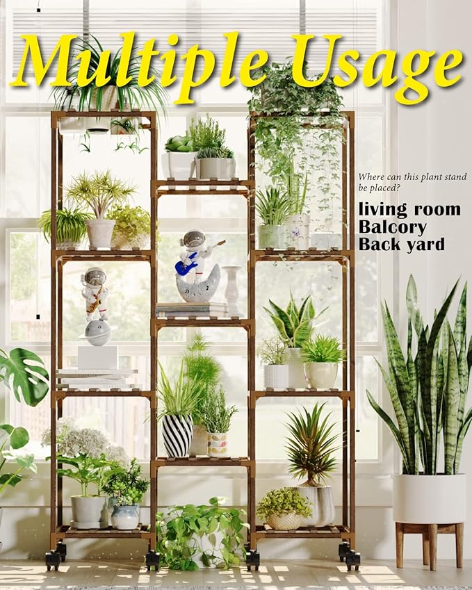 - Plant Stand with Wheels: The Plant Rack is equipped with wheels, allowing you to easily move your plants to the living room, balcony, or garden, adding flexibility and convenience to your space."