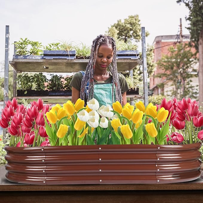 - Built to Last: Our raised garden beds outdoor are made of 0.8mm galvanized metal sheet, double-layer anti-corrosion galvanizing and oval structure design. Compared with the ordinary rectangular elevated garden bed with a thickness of 0.3mm, it will be the right choice for you.