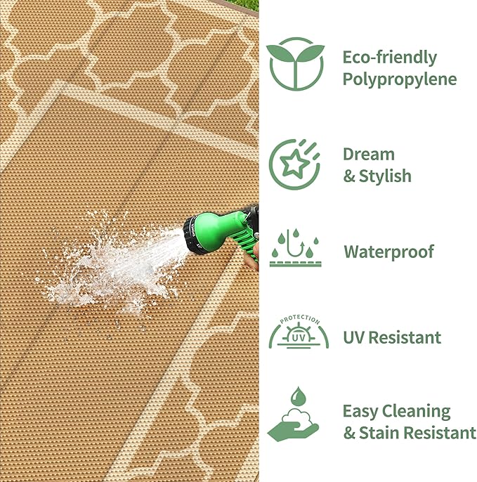 - Versatile Settings:Upgraded polypropylene ensures breathability and fast drying in this outdoor rug waterproof design. Perfect for the patio, deck, backyard, garden, porch, beach, RV, picnic, or camping. Elevate your outdoor experience with GENIMOโwhether you're furnishing a peaceful retreat with pamapic outdoor furniture or outfitting your weekend getaway with stylish rv essentials.Also great as fall outdoor decor or a key element in your fall decor transformation