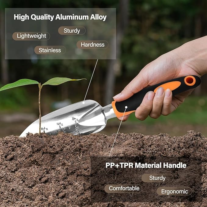 sungwoo Garden Tool Set 8 Piece, Heavy Duty and Lightweight Aluminium Alloy Tools with Non-Slip Ergonomic Handle, Storage Tote Bag, Gardening Hand Tools, for Women and Men Orange