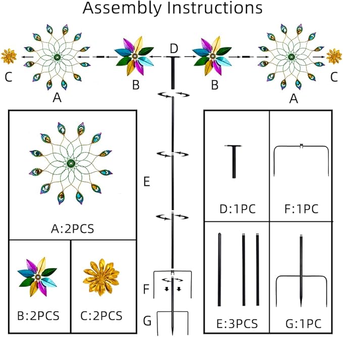 - 【Withstand all Weather】 Yard art wind spinner was covered with a antirust antifade coating, which was bright in color and more durable.