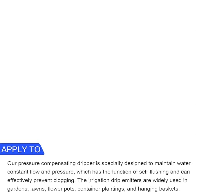 - [1]: APPLY TO - The irrigation drip emitters are widely used in gardens, lawns, outdoor yards, flower pots, container plantings, and hanging baskets.