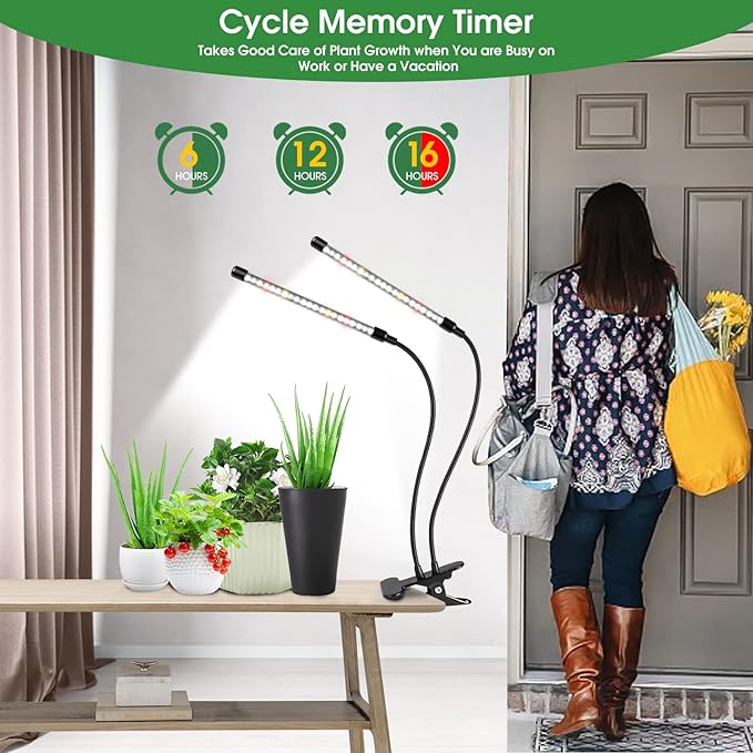 - Cycle Timer Function - This grow light offers the circular memory timer function with 3 options - 6h/12h/16h, auto on/off and no more daily manual operation. The 16-hour timer setting offers your plants enough light during flowering and fruiting.