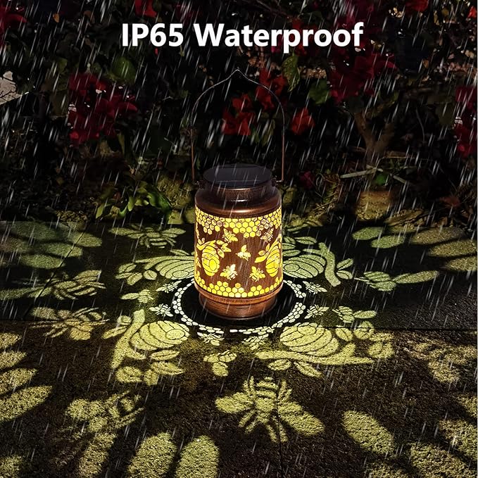 - Graceful Decorative Design - The retro appearance, with gold copper color and hollow out metal veneer, the solar outdoor lanterns casts bright and warm light in darkness, accompanied by gorgeous and graceful honeybee patterns, adding a beautiful atmosphere to the surrounding environment.