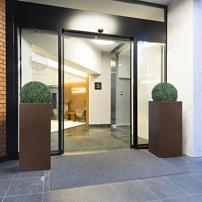 Large Planter for Outdoor Plant 14Lx14Wx30H Inches Metallic Heavy Tall Planter Box for Outdoor & Indoor, Rectangular Flowerpot 25Lbs/PC, Espresso, No Assembly and Seamless, Set of 2