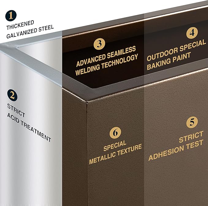 - 【No Assemble and Seamless】Our flower box arrives fully assembled and requires no additional setup. Simply unpack and place it in your desired location for instant use, saving you time and effort. Crafted using advanced fully automatic welding technology, this flower box features a seamless, one-piece design with a smooth and even surface, ensuring long-lasting durability and a polished appearance.