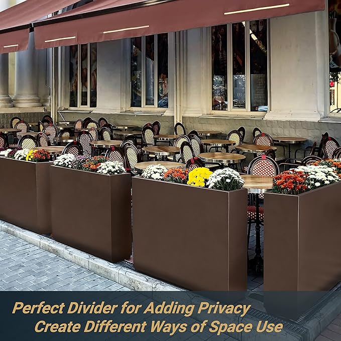 Metallic Heavy Planter for Outdoor Plants, 38Lx10Wx30H Inches Tall and Long Metal Divider Planter Box for Outside & Indoor, No Assembly Required (Espresso)