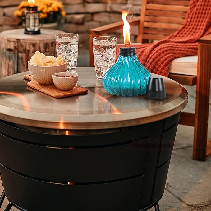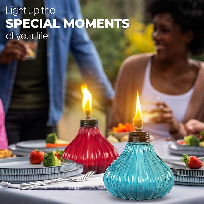 - LIGHT UP WITH EASE: Our offered tabletop table torches feature thick glass, high quality fiberglass wicks, and snuffer caps. For best burn, fill the canister with fuel, insert the wick so it's no more than ยฝ" above the canister, and allow it to saturate for 10-15 minutes. These tips will ensure that the wick will last the lifetime of your torch.
