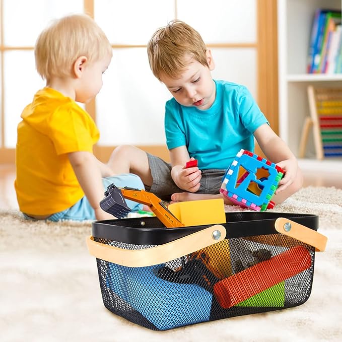 - PRODUCT SIZE: Fruit basket.Material: Metal + Bamboo. Size: 15.7x9.8x6.7 inches.This mesh basket with folding handle helps us keep our closets organized and takes up minimal space while storing many items.In addition,the wire basket of the garden harvest basket is highly breathable,light when empty,and easy to see when picking and placing items.
