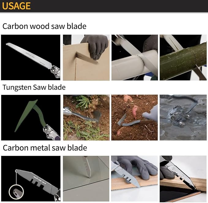 - 🐊This cutting-edge tool set can cut through a wide range of materials, including wood, plastic, tile, and glass, depending on the saw blade selected. Additionally, it can also be utilized for agricultural tasks such as gardening and mowing when equipped with the optional hoe or sickle attachment.