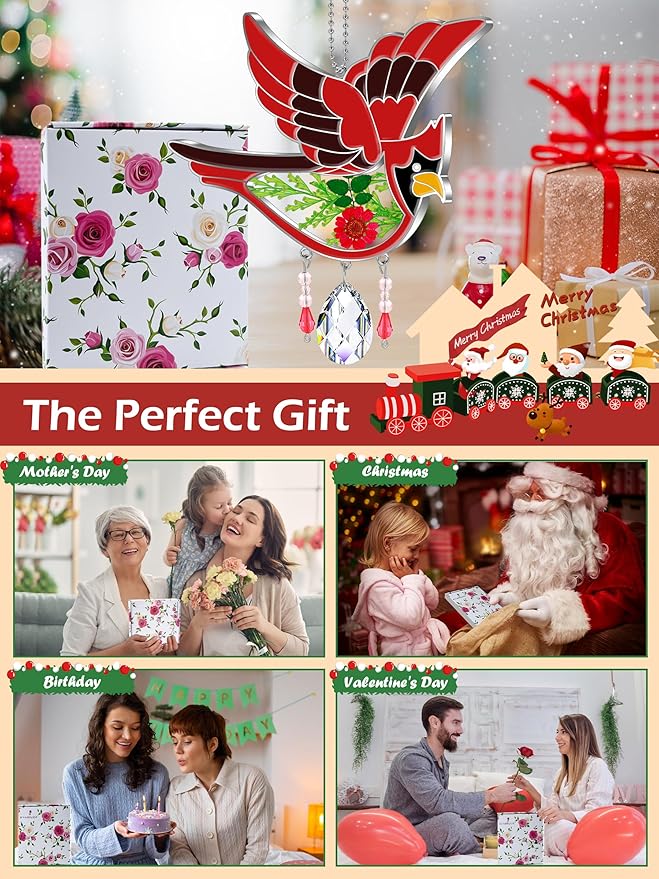 - ✅The Holiday Decor Glass windchimes Wide Applications:The holiday decor real flower cardinal crystal mom Sun catcher, suitable for indoor and outdoor decorations, such as window, wall, door, yard, christams tree, garden and patio. perfect for adding a touch of mother`s day, birthdays party, thanksgiving, valetine`s day, and christmas to your home or garden decor.