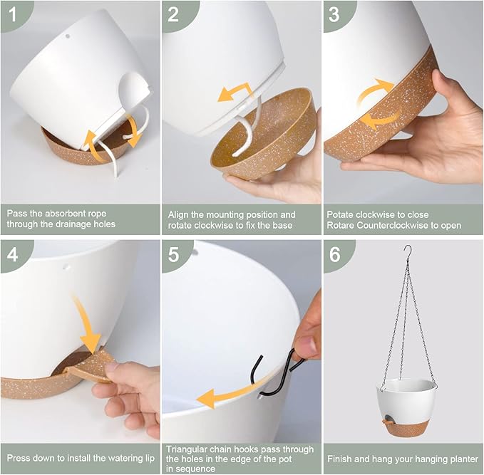 - Drainage Holes - The hanging planter multiple drainage holes can help you avoid over-watering and release excess water. Separate the potting soil from the water surface, enter the water through cotton rope perforations to keep the soil moist and the roots healthy. Self watering flower pots provides the best amount of water for your plants.