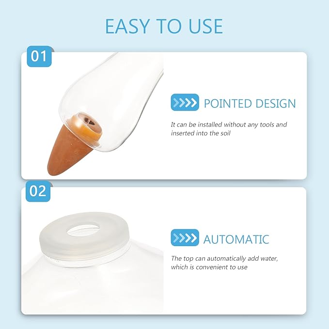 - Automatic watering device: Plant automatic watering bulb ball irrigation tool, easy to use, just fill the water ball with water, and then directly insert its tip into the soil