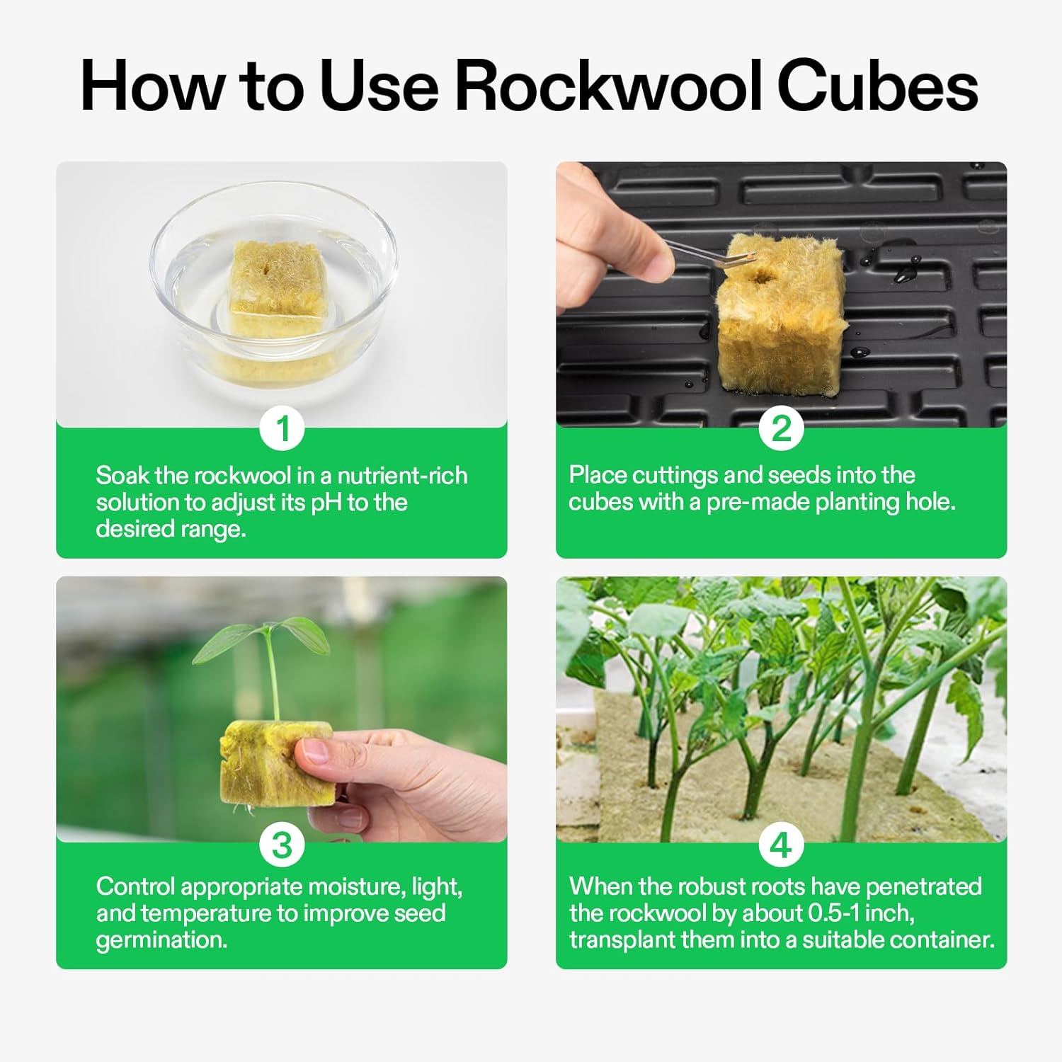 - Easy to Use & Observe: These light and fluffy rockwool cubes are easy to cut to any size; Each cube has a hole for your seeds or cuttings, and you can transfer the cubes to any medium when the roots develop; It is also easier to observe the growth on one sheet