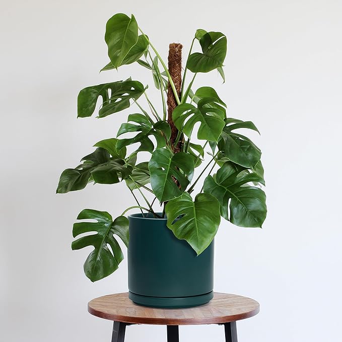 - Simple, elegant, and modern cylindrical straight round planter pot with saucer and drainage hole.