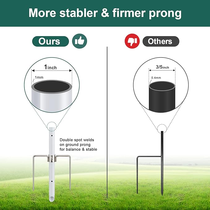 - Wind-Proof Stability!: Our flag pole features a -strong 12โ middle prong and a 2-prong base that digs deep into the soil, keeping your flag standing tall even when the wind picks up