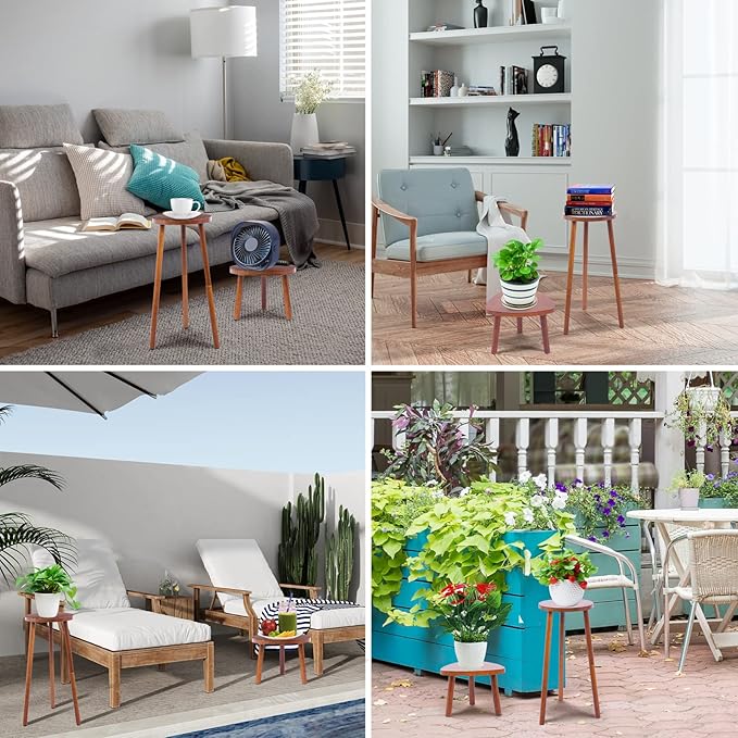 - [2 Tier Plants Stand]: Wood large plant stand is the stacked version as it is perfect for corners and as side table decor. It brings a cozy feel to a cold space.It has furniture pads on the table legs,stable with no rocking.