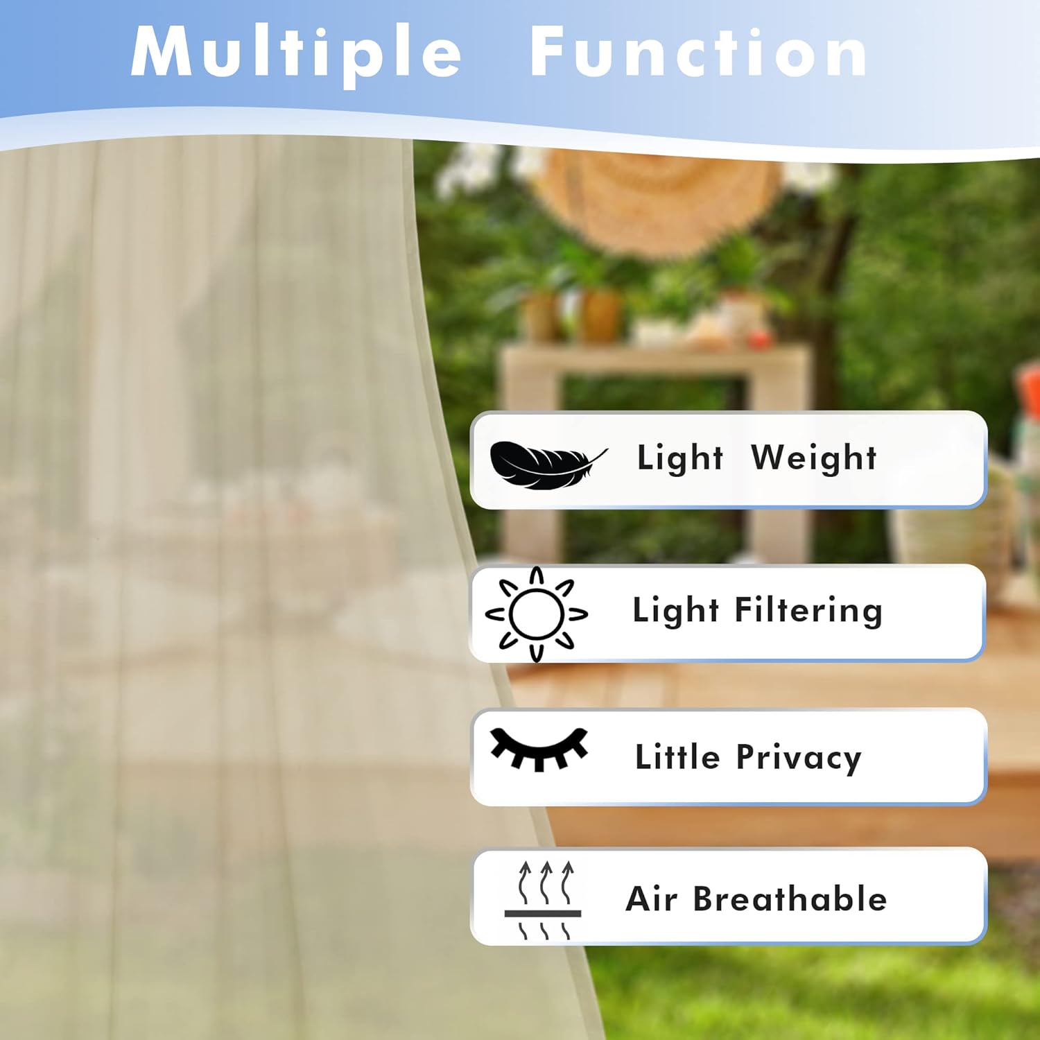 HolidayIdeas Outdoor Sheer Curtains for Patio Waterproof, 4 Panels - 54 x 84 Inch - Light Filtering Voile Outside Curtains Grommet Drapes for Front Porch, Gazebo, Pergola, Backyard, Linen Color