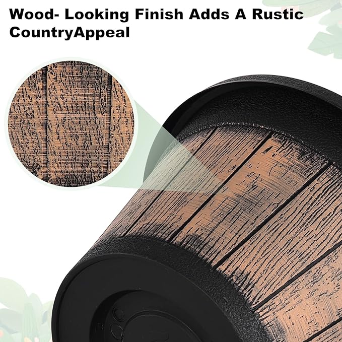 - Retro Wine Barrel Design: Features a vintage wine barrel style with rolled rims and imitation wood grain finish for a rustic look.