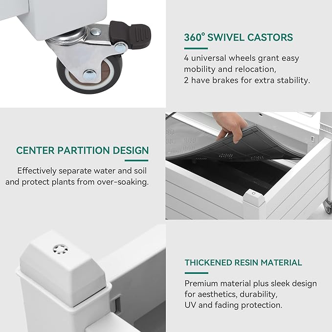 - Effortless Gardening Mobility: This planter trellis box comes with four swivel casters, two with brakes for added stability and mobility; The three rubber strips divide the planter into four grids for diversified plant cultivation