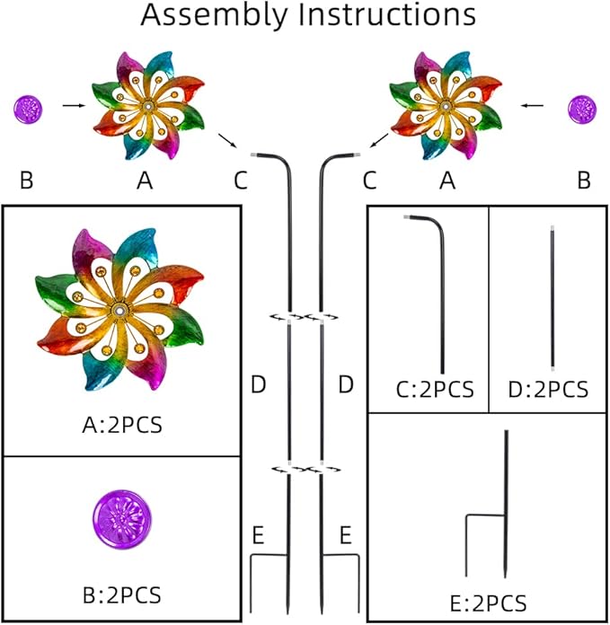 - Garden Wind Spinner Decoration: The 2 packs flower wind spinners is composed of bright flower shapes. When it rotates in the wind, it will create a visual sensation, which will help distract your attention and relax your mood.