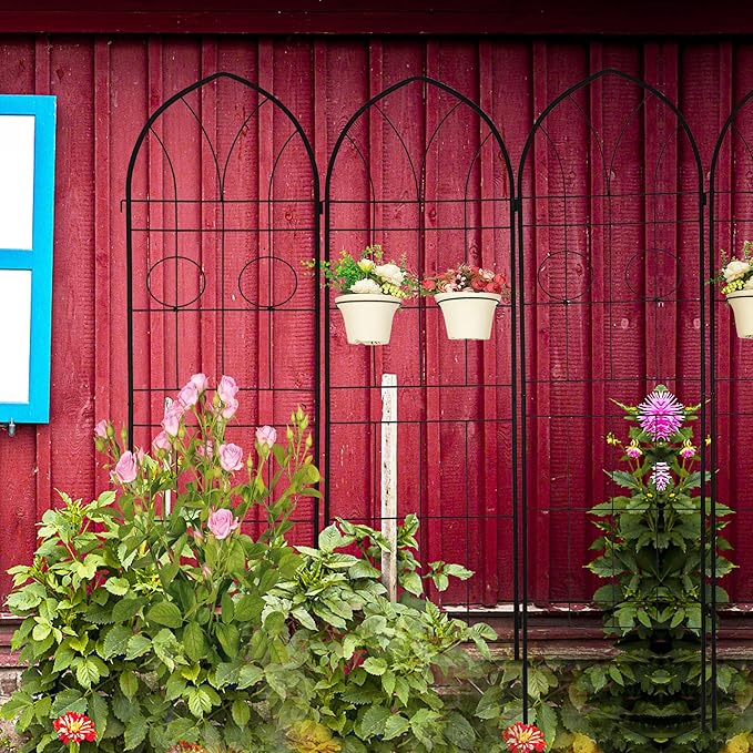 - Plants Supporting Trellis: This metal garden trellis is perfect for supporting all kinds of flowering trellis plants, wall-climbing vines. It allows them to grow naturally up towards the top.