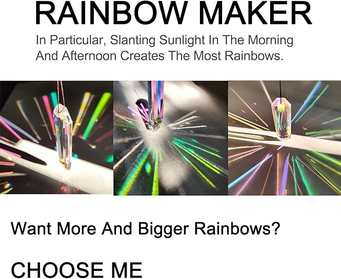 - Be sure to hang in a sunny place, only when the sunlight is slanted, the prism will produce a rainbow