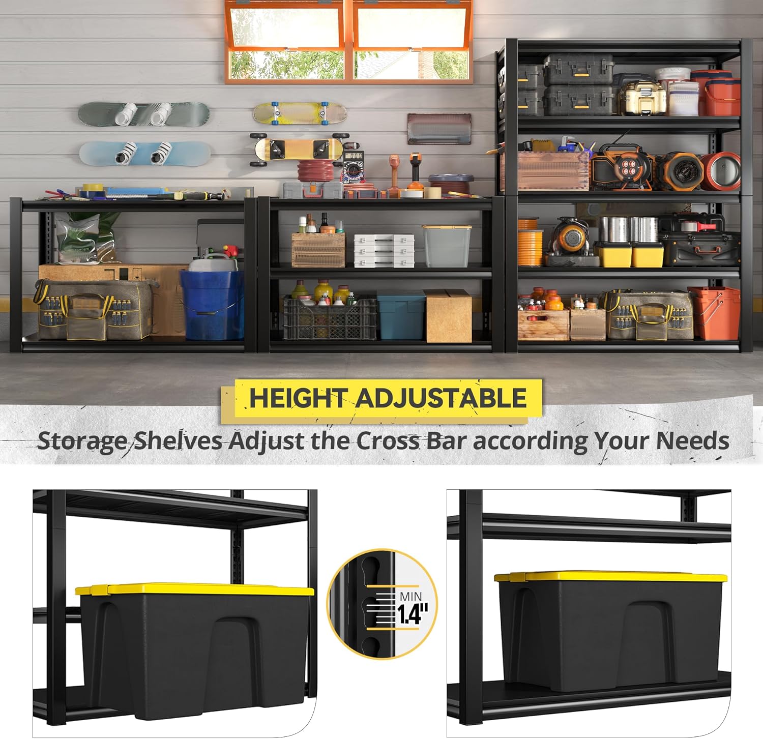 REIBII Garage Shelving Heavy Duty Storage Shelves, Extra Large Adjustable Storage Rack with 5 Tier Metal Shelving Unit, 2500LBS Loads Heavy Duty Shelf, Easy Assembly, 4 Pack