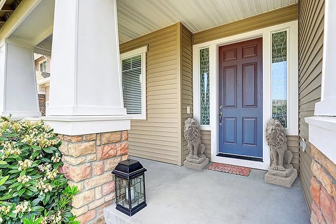 EMSCO Group Guardian Lion Statue – Natural Sandstone Appearance – Made of Resin – Lightweight – 28” Height