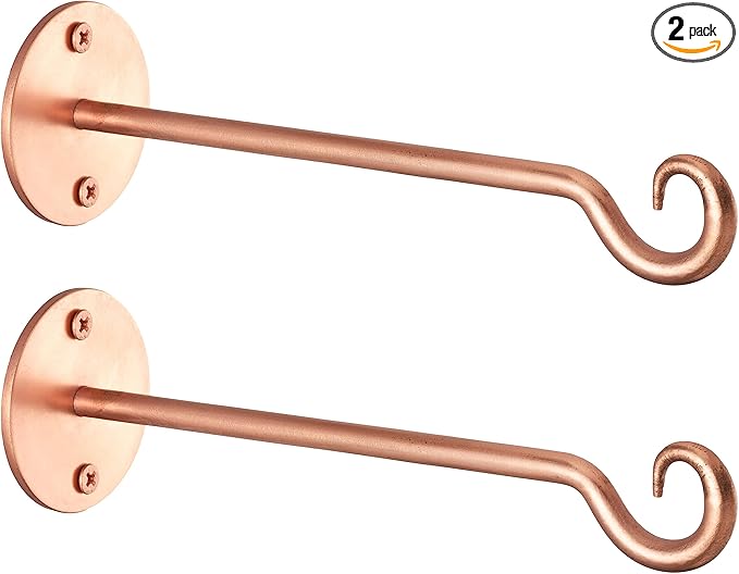 Monarch Abode Wall Mount Plant Hook Premium Metal Decorative Hanging Bracket for Plants Bird Feeders Planters Home Decor, Heavy Duty, 7.5 inch, Set of 2, Brushed Copper Finish