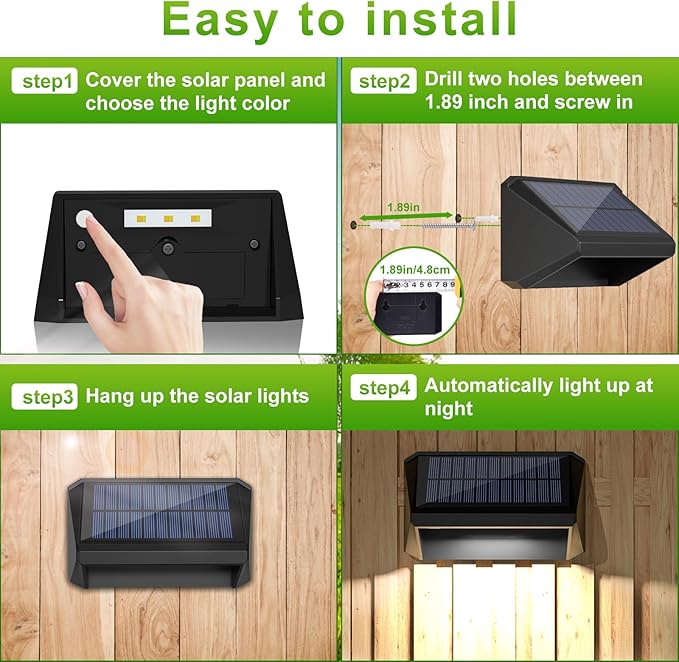 - 【Auto Working& Intelligent Memory Function:】The fence solar lights sense the surrounding brightness, automatically come on when it gets dark and go off when it becomes bright. With the intelligent memory function, these fence lights light up the same color as you set up last night, which saves you trouble from repeat modes setting.