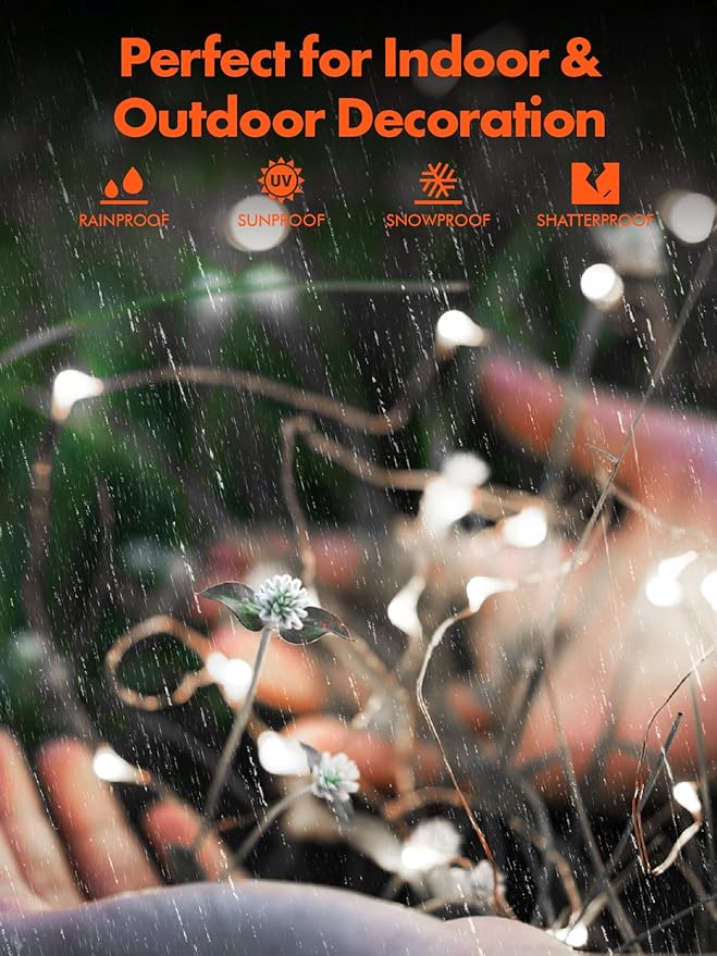 - Ideal for Outdoor Decorations: These solar lights are perfect for outdoor Christmas lighting. The soft string can be wrapped around signs, plants and furniture. Suitable for Christmas, New Year, Party, Valentine's Day, Wedding, Home, Window, Bathroom, Festival, Holiday, Shows, Restaurant, Hotel, Commercial Building etc