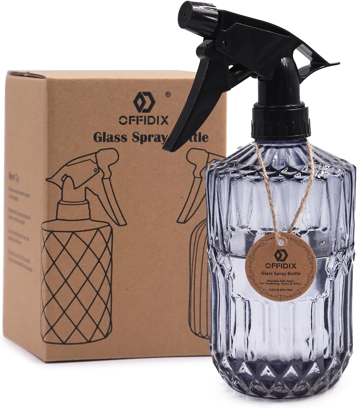 OFFIDIX Glass Spray Bottle, Fine Mist Plant Mister, Handheld Pressure Watering Can,Adjustable Nozzle Glass Spray Bottle,0.43L/15.17oz Handheld Spray Bottles for Garden Plants Cleaning Solutions(Gray)