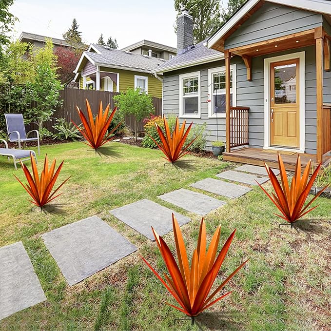 - [Simple assembly]Easy to assemble rust Metal Tequila Agave Plant features rustic yard decor, just place it wherever you want, perfect for decorating gardens, courtyards, ponds, terraces and lawns. It can be placed on the ground, on the terrace, as a decorative pot - outdoor and indoor.