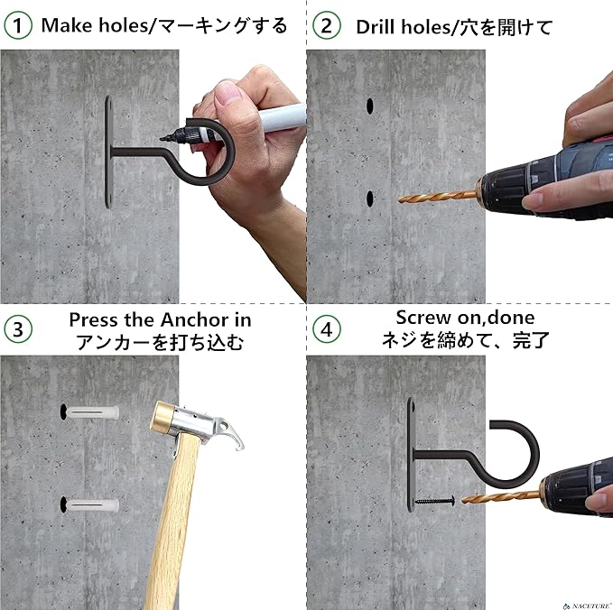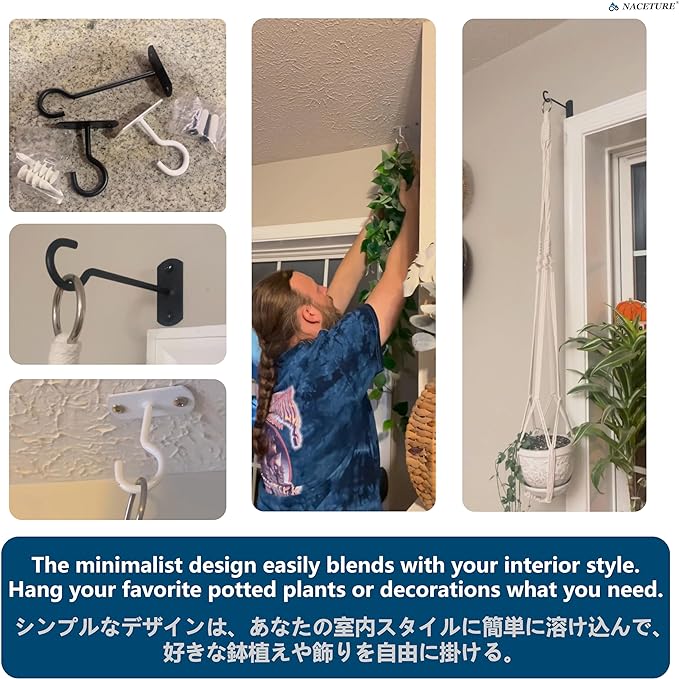 - 🔨 STURDY AND DURABLE CONSTRUCTION - NACETURE Plant hanger hook design ensures stability and strength, suitable for interior and exterior use, indoor plant hangers from ceiling, kitchen, balcony, garden, or any place in your home.