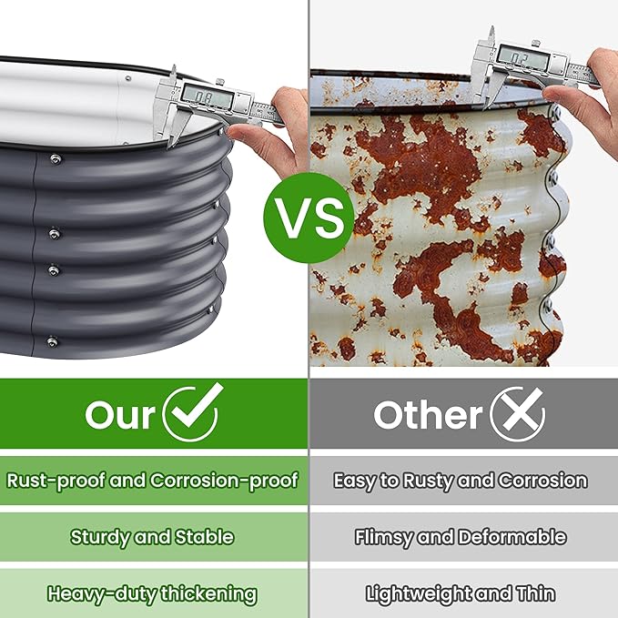 - Safety and Eco Friendly: We use USDA-approved paint that is 100% safe and eco friendly,so you can use our products with peace of mind.Plus,Our garden bed features an oval design that eliminates sharp corners and is covered with heavy-duty rubber edging to prevent injuries.