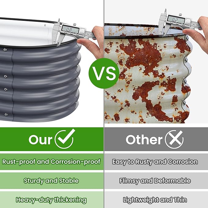 - Safety and Eco Friendly: We use USDA-approved paint that is 100% safe and eco friendly,so you can use our products with peace of mind.Plus,Our garden bed features an oval design that eliminates sharp corners and is covered with heavy-duty rubber edging to prevent injuries.