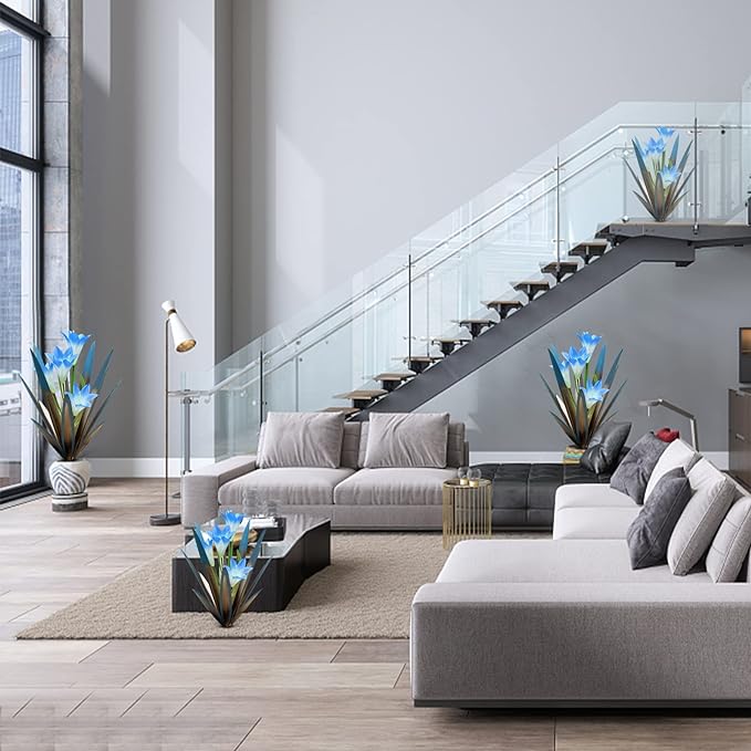 Homight Metal Agave Plant Outdoor Decoration Outdoor Garden Decoration Lily Mexican Yard Art Plant Garden Agave Lily Decorative Garden Gift… (2 Big Blue Lilies)