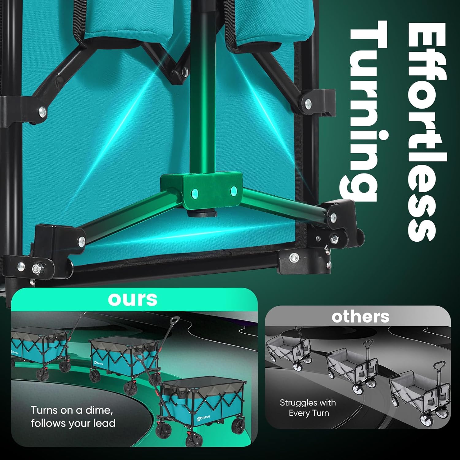 Collapsible Wagon Cart with Big All-Terrain Beach Wheels, Foldable Heavy Duty Wagons with Cup Holders, Utility Carts for Camping, Garden, Outdoor, Grocery, Sports. Turquoise