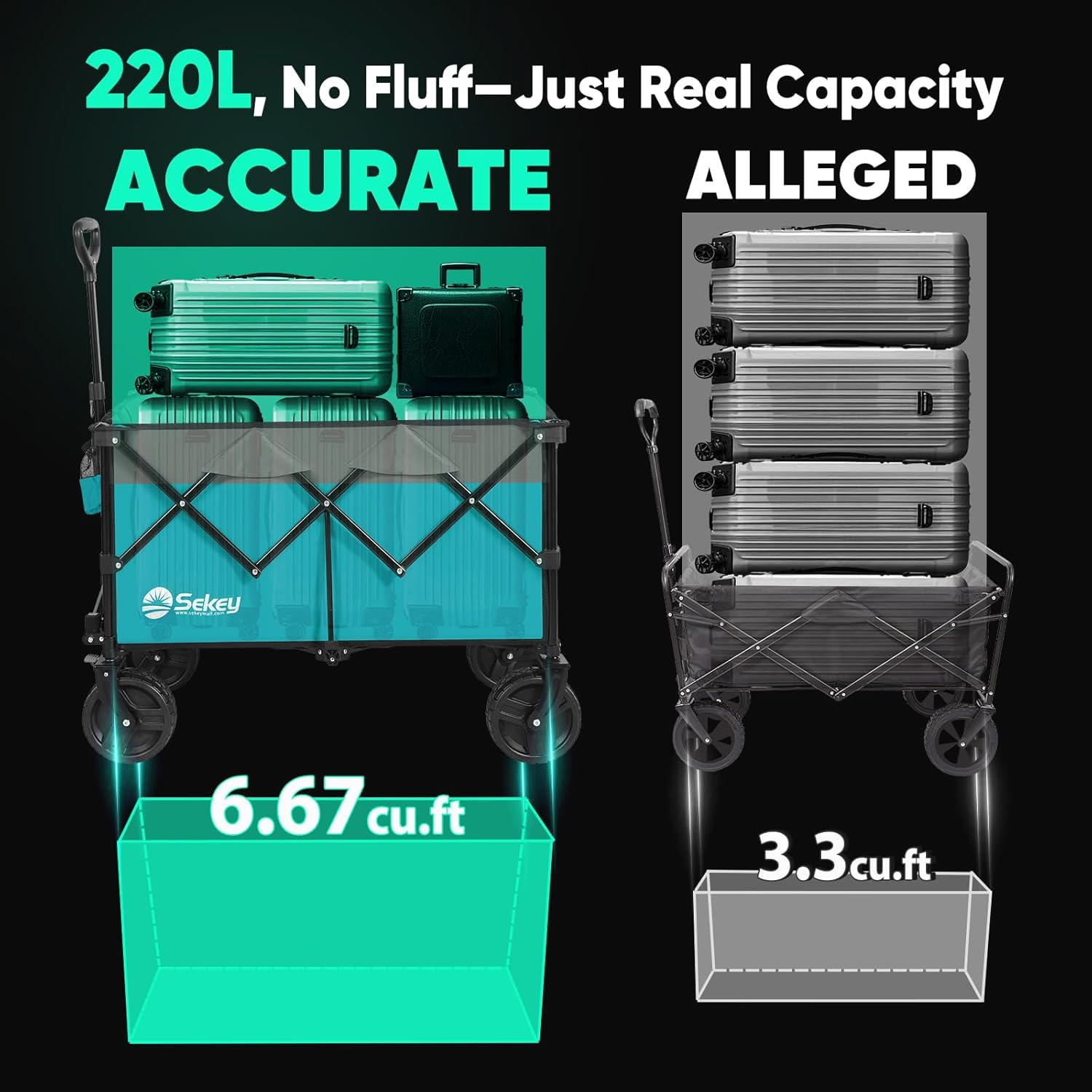 - 【𝐆𝐨 𝐀𝐧𝐲𝐰𝐡𝐞𝐫𝐞 𝐖𝐡𝐞𝐞𝐥𝐬】: Featuring 𝟖" 𝐝𝐢𝐚𝐦𝐞𝐭𝐞𝐫 𝐰𝐡𝐞𝐞𝐥𝐬 𝐚𝐧𝐝 𝟑" 𝐰𝐢𝐝𝐞 𝐭𝐫𝐞𝐚𝐝𝐬, Sekey wagon glides effortlessly over sand and rough terrain. The 𝐚𝐧𝐭𝐢-𝐬𝐥𝐢𝐩 𝐫𝐮𝐛𝐛𝐞𝐫 strip enhances traction and reduces vibrations, while the 𝐛𝐮𝐢𝐥𝐭-𝐢𝐧 𝐛𝐫𝐚𝐤𝐞𝐬 provide reliable stopping power wherever you go.