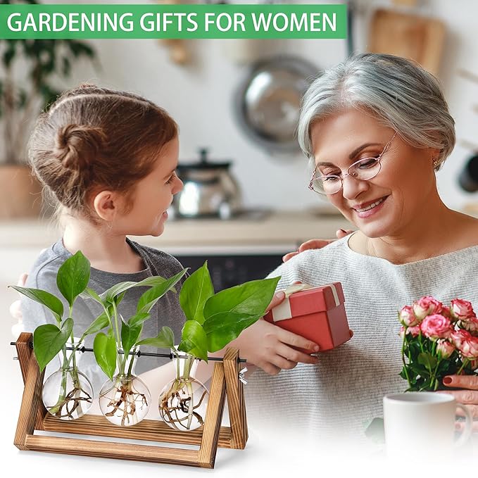 - 【Plants Propagation Stations】Vintage designed with mini bulb glass vase. Beautiful and eye-catching desk decor. Nice photo prop, prefect for indoor plants propagations and cuttings! Propagates your plant's babies in style, bulb glass container with plenty of room for plant's roots and all are visible for observing its growth condition. Great Gift for women, mom, friends and plant lovers.