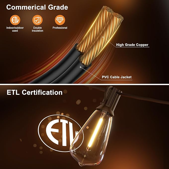 - 【Energy-Saving 30000 Hours】With increasing emphasis on sustainability, patio lights often use LED technology, which consumes significantly less energy compared to traditional incandescent bulbs. LED string lights are not only eco-friendly but also help reduce electricity costs.