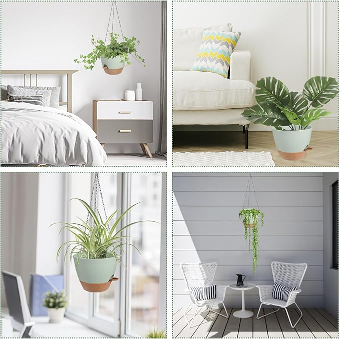 - Removable Trays - Hanging pots for plants indoor come with a removable tray that serves as a self-watering reservoir, storing a certain amount of water for the plants (10-14 days). You don't have to worry about your plants running out of water when you're away on a business trip or traveling.