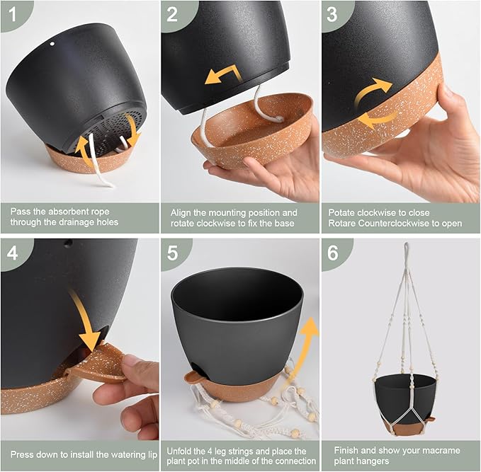 - Self Watering Pots - The self watering hanging planter features multiple drainage holes to help you avoid over-watering and release excess water. Separate the potting soil from the water surface, enter the water through cotton rope perforations to keep the soil moist and the plants healthy growth.