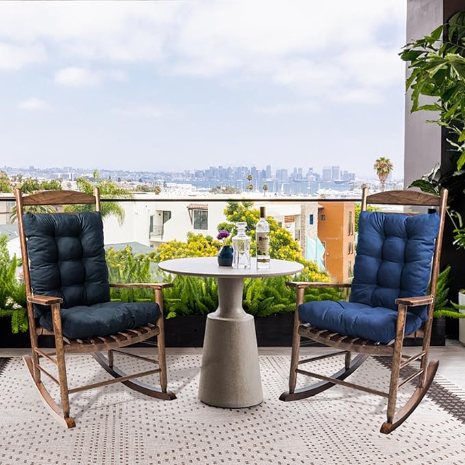 - High Quality Cushion: The high back chair cushions for patio are made of high quality polyester material, with cotton for filler. Attached ties keep patio rocking chair cushion securely fastened to your outdoor patio furniture