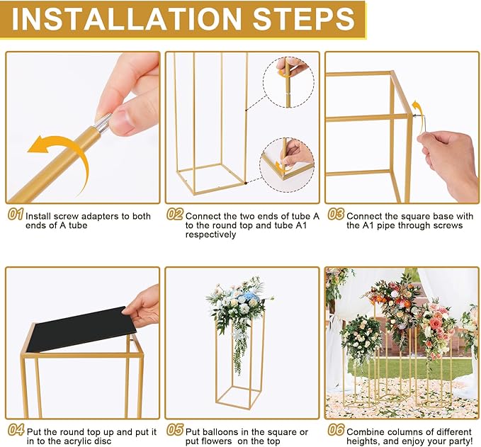 - 【Elegant Gold Design】Our metal plant stand set features a stylish gold color and tall cylinder design, making it the perfect addition to any party or wedding decor. The elegant look and feel of these stands will enhance the beauty of any indoor or outdoor space.
