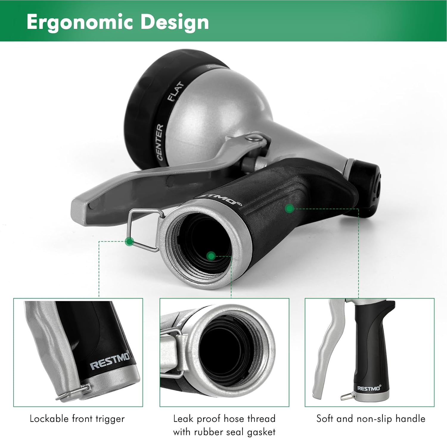 RESTMO Garden Hose Nozzle, Heavy Duty Metal Water Nozzle with 7 Adjustable Spray Patterns, High Pressure Hand Sprayer with Flow Control, for Watering Plants & Lawns, Washing Cars & Pets, Black