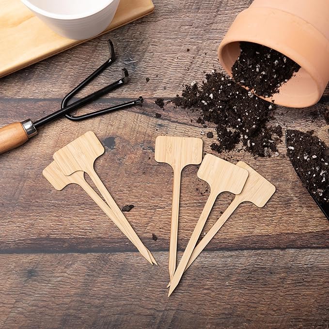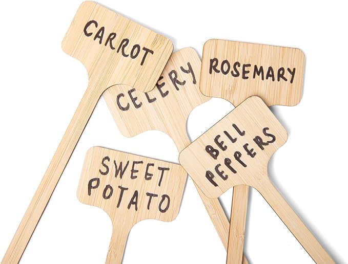 - PREMIUM WOOD bamboo : This wooden plant labels for outdoor garden are made of high-quality bamboo, it is sturdier than ordinary plastic, BPA-free, sustainable, free from harmful substances, and will not pollute the soil and damage your plants. This wooden garden labels accessory extends the lifespan, is more durable than plastic, and is fully reusable.