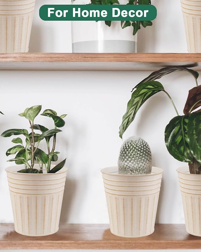 - 【Size of Metal Pots】There are 6pcs beige metal planters in a package, Topper opening diameter 5.9 inch, bottom diameter 4.3 inch, barrel high 5.9 inch.