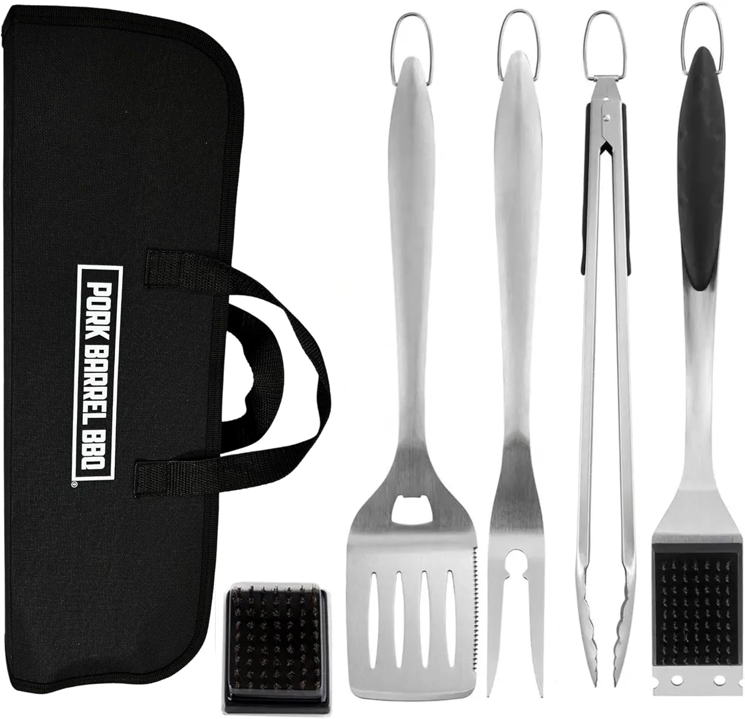 Pork Barrel BBQ Tool Set Grill Kit - Premium Stainless Steel BBQ Grill Accessories, Grilling Tools & BBQ Accessories for Outdoor Grill - Perfect BBQ Tools and Grilling Gifts for Men